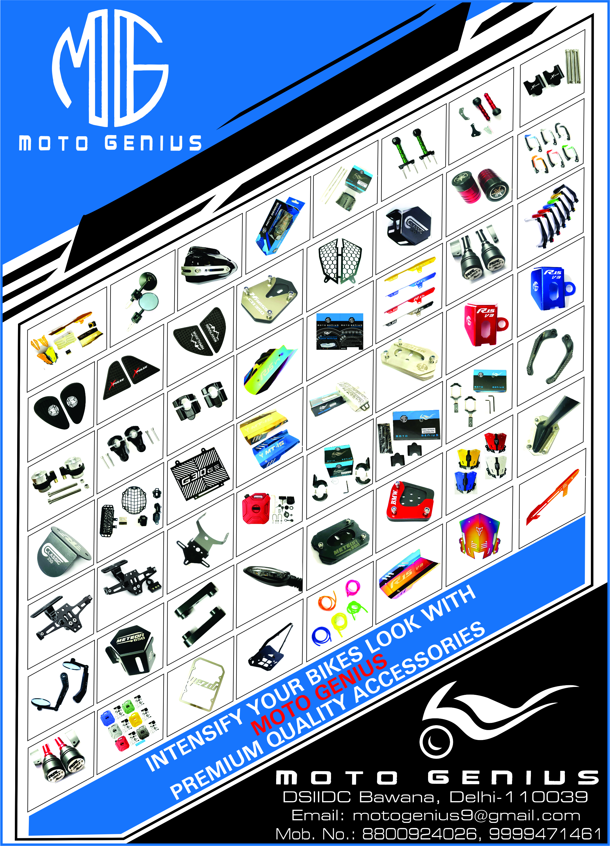 Manufacturing all types of Bike Accessories Intensify your Bikes Looks with: - "MOTO GENIUS" Premium Quality Accessories...t